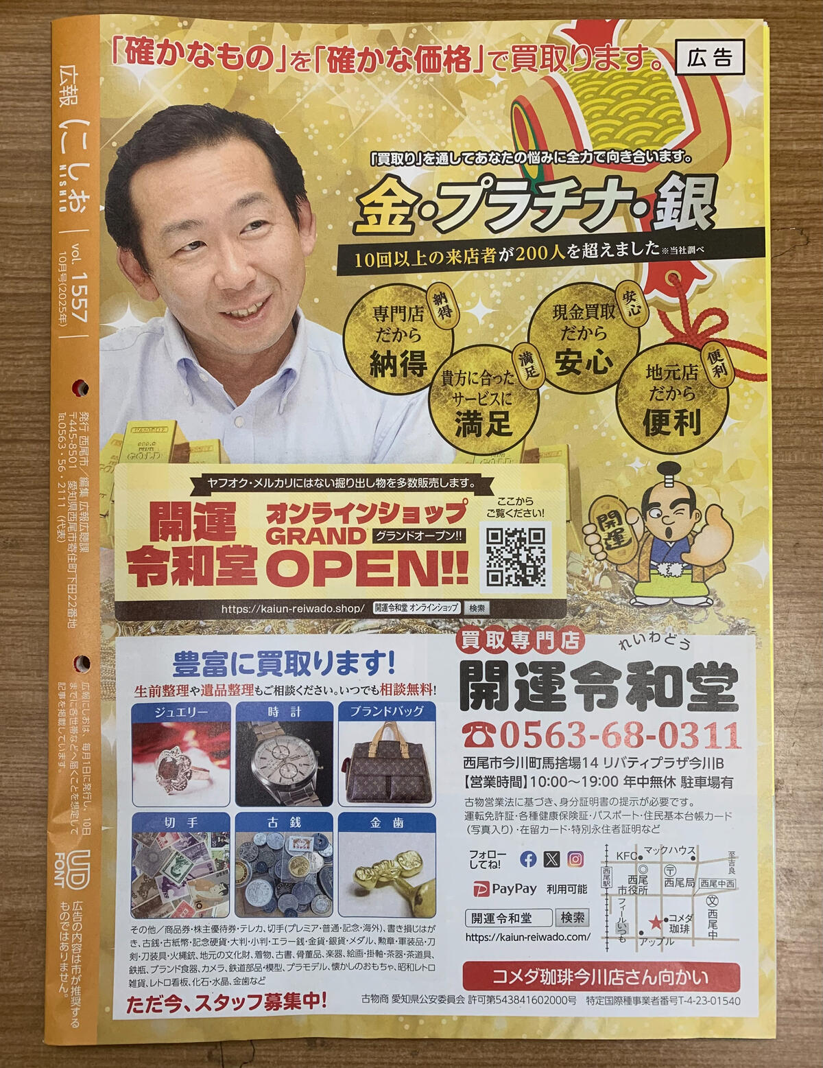 このたび、西尾市の「広報にしお 2025年10月号(No.1557)」に当店の広告が掲載されました。
