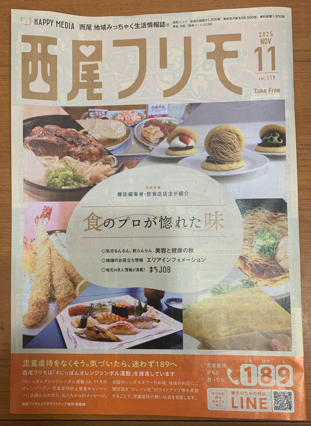 地域みっちゃく生活情報誌「西尾フリモ」11月号に、