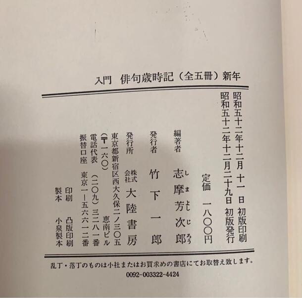 昭和52年に大陸書房より初版発行された本書は、志摩芳次郎氏が編纂したもので、「新年」「春」「夏」「秋」「冬」の季節ごとにまとめられた内容となっています。