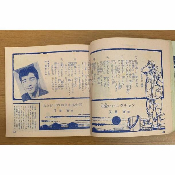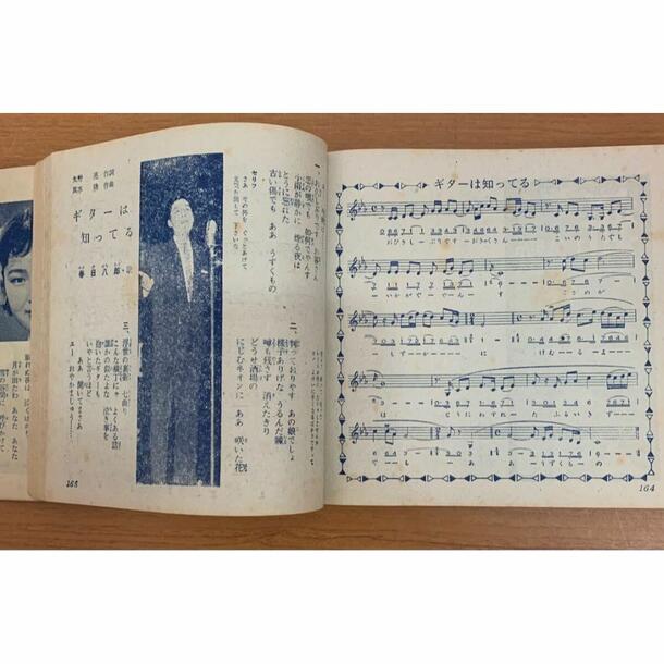 当時流行していたヒット歌謡曲の歌詞や譜面を収録した一冊で、カラフルな誌面構成が特徴。