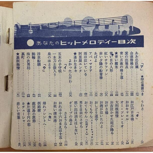 昭和期に発行された音楽雑誌「明星(Myojo)」の付録歌本『あなたのヒットメロディー』です。