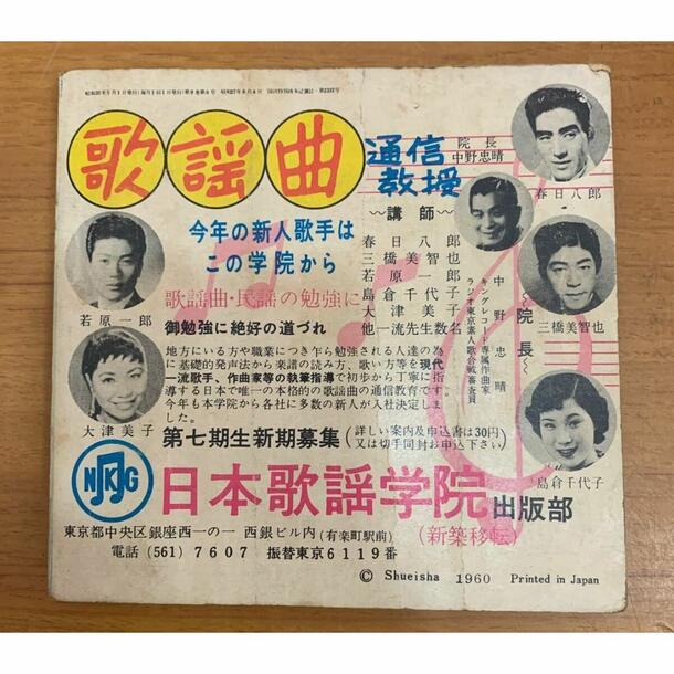 表紙は、人気歌手 守屋浩 と 能瀬桂子 が飾っており、昭和の歌謡界の雰囲気をそのまま残す貴重なアイテムです。