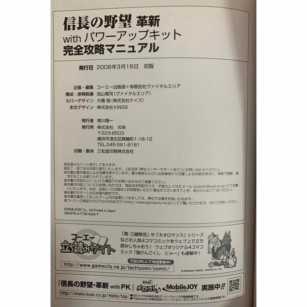 コーエー(KOEI)より発売された人気歴史シミュレーションゲーム「信長の野望 革新 with パワーアップキット」に対応した、公式完全攻略マニュアル本です。