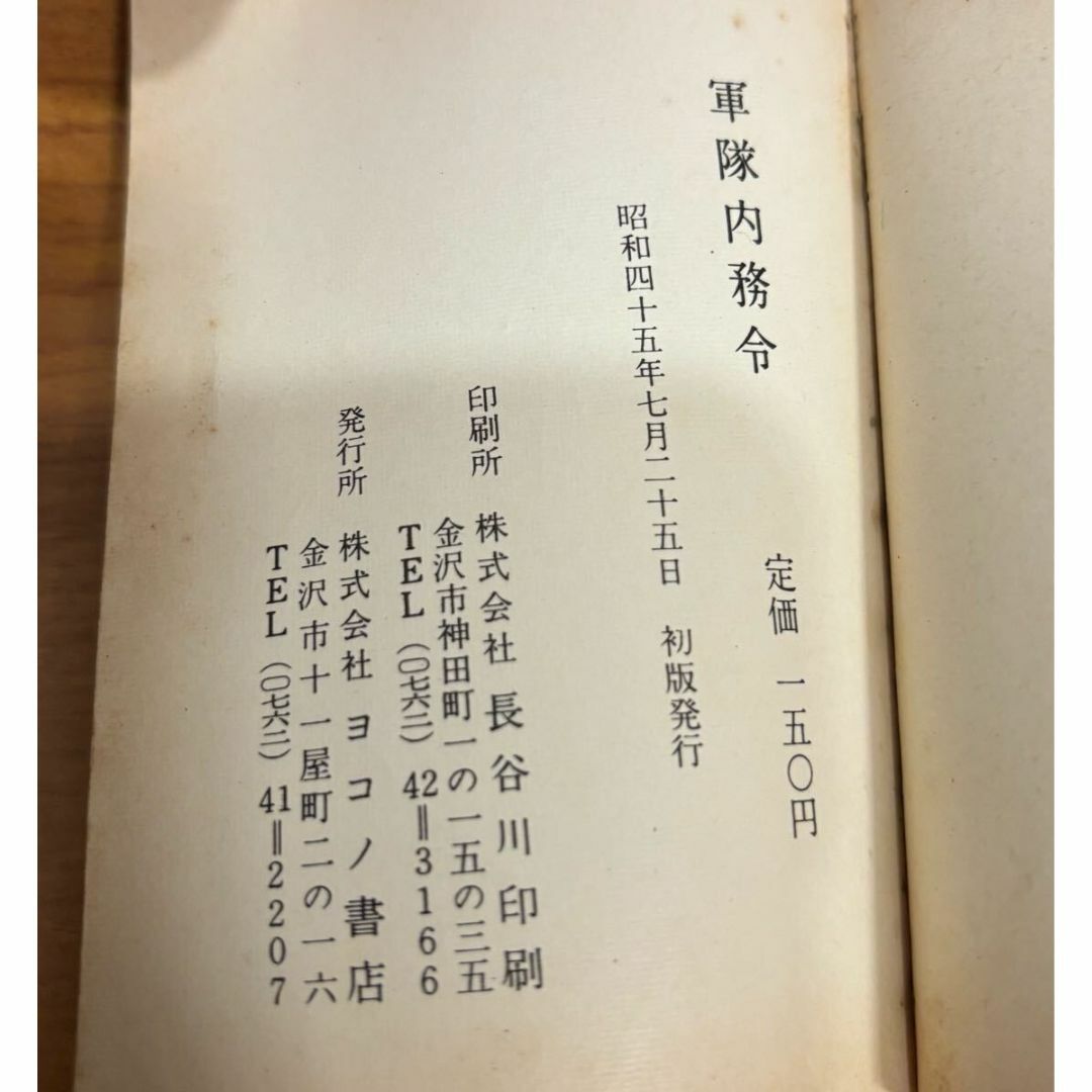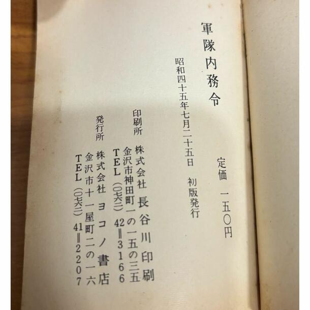 昭和45年(1970年)7月25日に発行された「軍隊内務令」です。