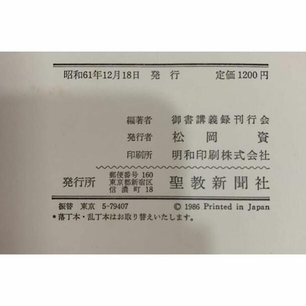 昭和61年(1986年)に聖教新聞社より発行された、『日蓮大聖人御書講義』第十九巻 です。