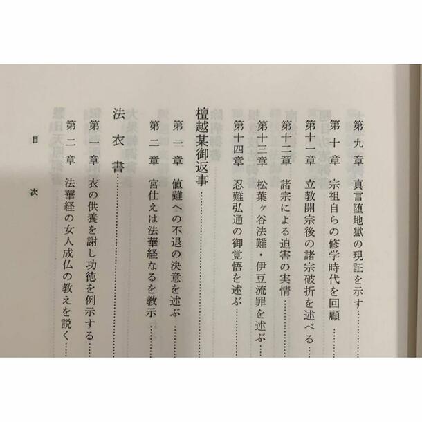 本書では「普入御返事」「小泉弥七御返事」「大果報御書」など、日蓮聖人の主要な御書を収録し、