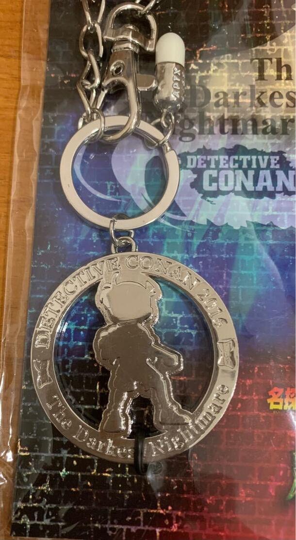シルバーカラーの金属チャームには、江戸川コナンのシルエットと「Detective Conan The Darkest Nightmare」の文字が刻まれたデザイン。