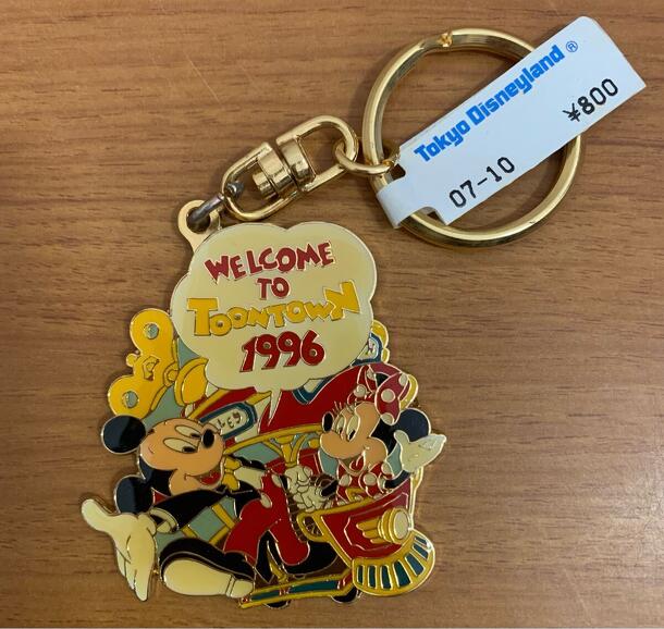 ミッキーマウス&ミニーマウスが描かれた、1996年の東京ディズニーランド「トゥーンタウン」記念キーホルダーです。