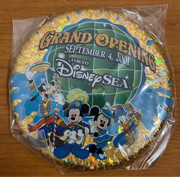 2001年9月4日の東京ディズニーシー開園を記念して発売された、貴重なグランドオープニング缶バッジです。