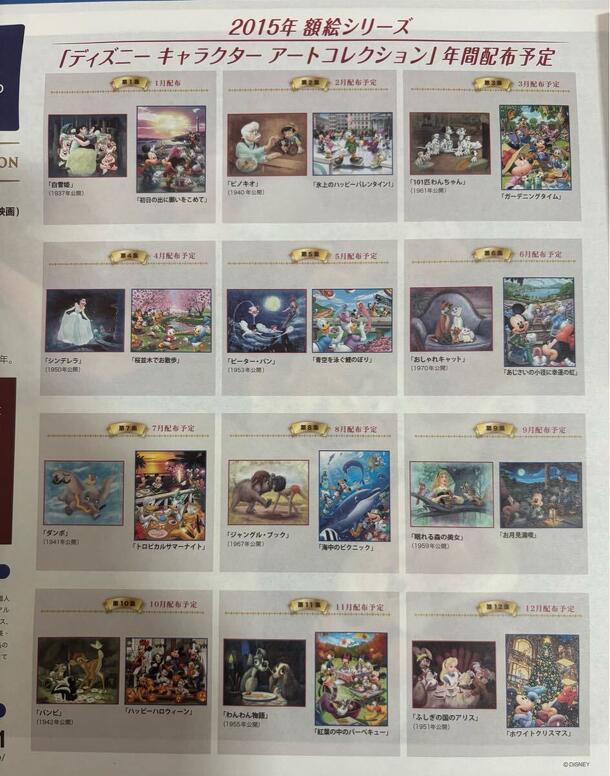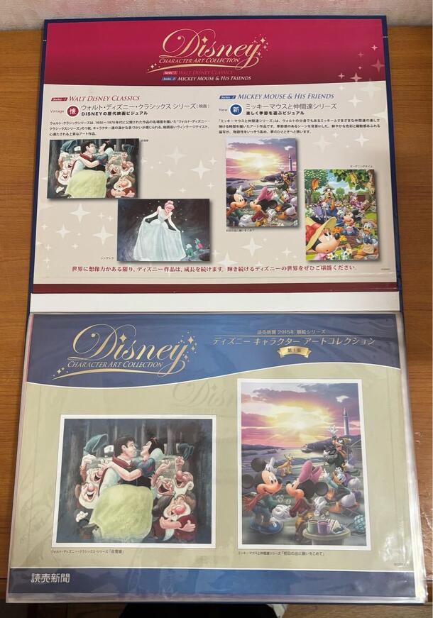 読売新聞が2015年に発行した「ディズニーキャラクターアートコレクション」額絵シリーズの第1集から第12集までをコンプリートした、全24枚の豪華セットです。