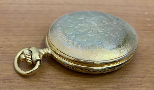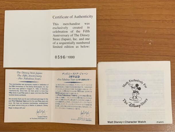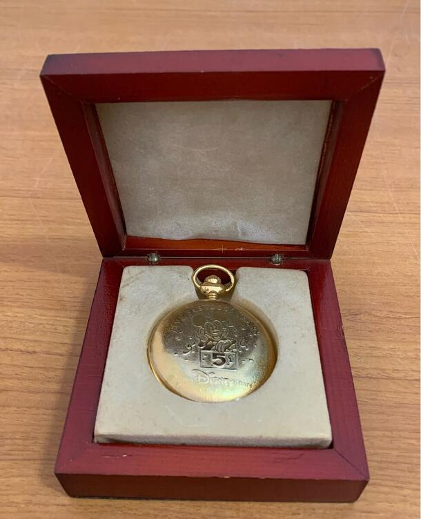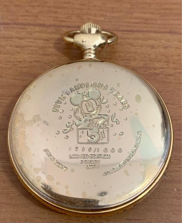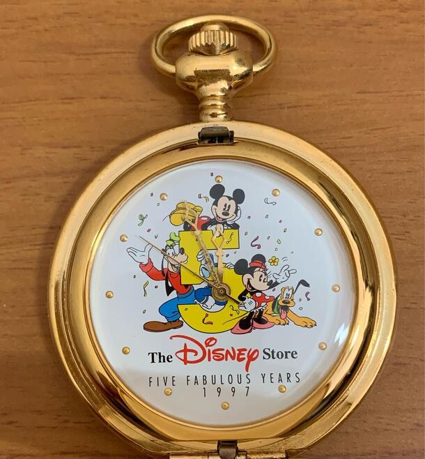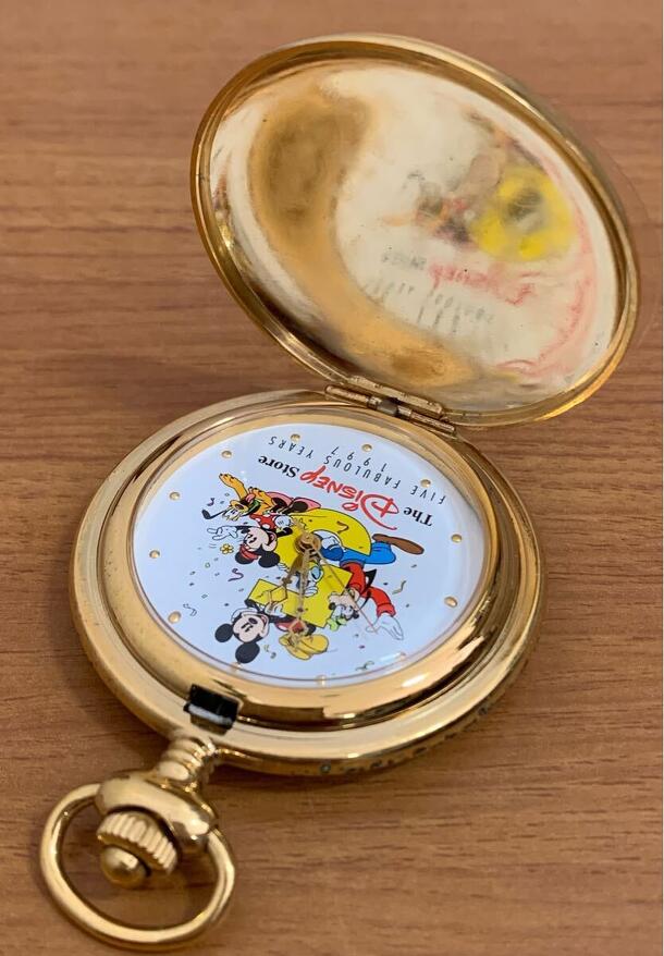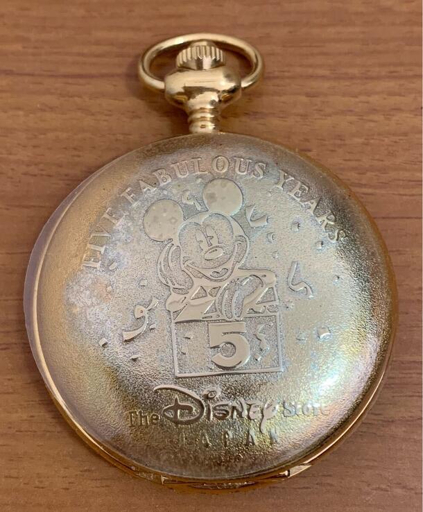 ディズニーストア5周年を記念して発売された、限定デザインの懐中時計です。