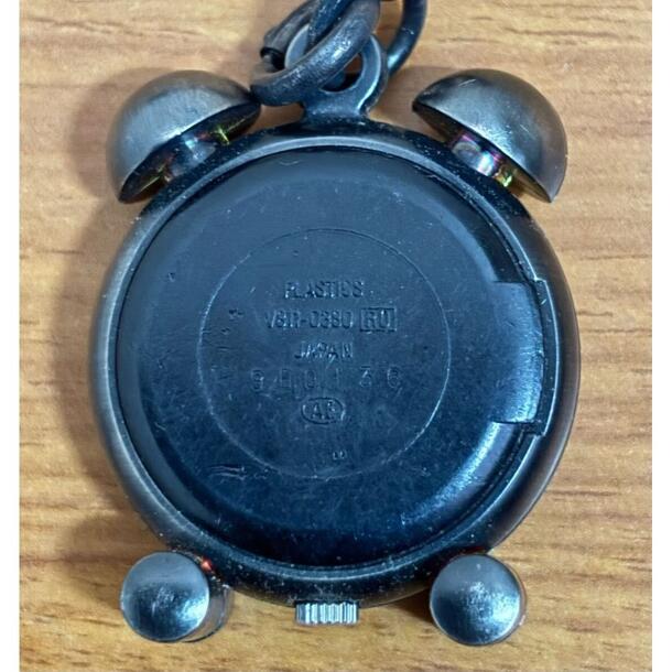 クラシックな目覚まし時計型デザインにチェーン付き、文字盤中央には愛らしいミッキーが描かれたコレクションアイテム。