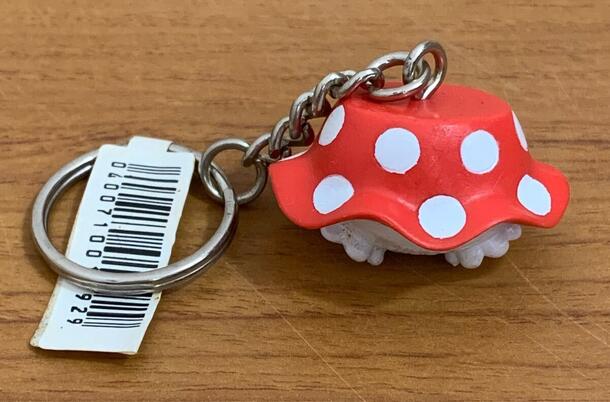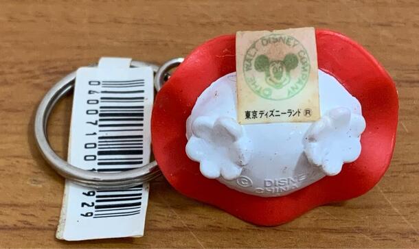 東京ディズニーランド・トゥーンタウンで販売されていた、ミニーマウスの赤白ドット柄スカートをモチーフにしたキーホルダー です。