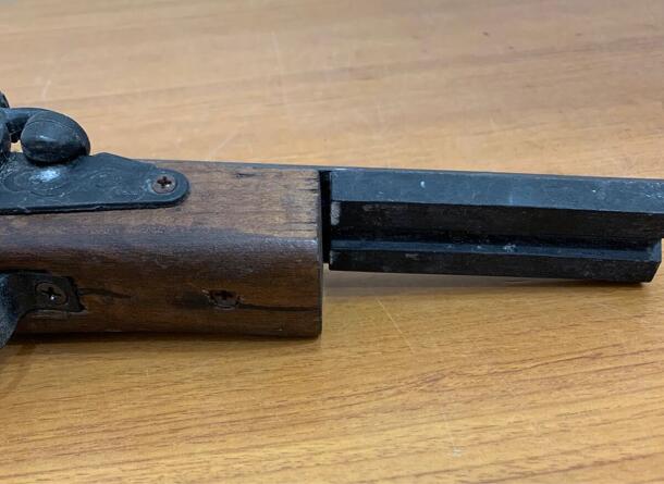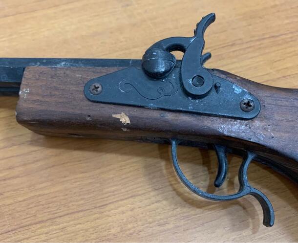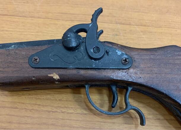 木製グリップと金属製パーツでリアルな質感を再現しており、観賞用や撮影用小道具としても最適です。