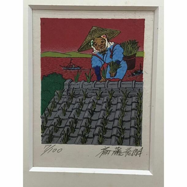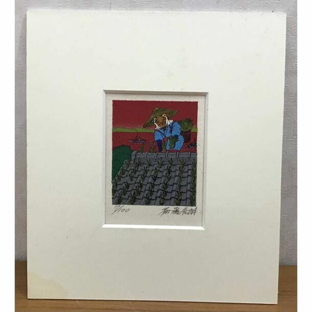 ユーモアあふれる独特の作風で知られる斎藤吾朗による版画作品です。