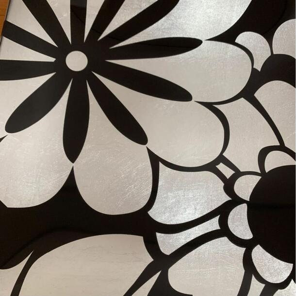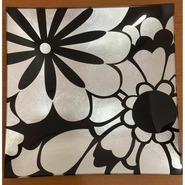 ガラス製のドリンクカップ2客と、モノトーンの花柄が印象的な中皿がセットになっています。