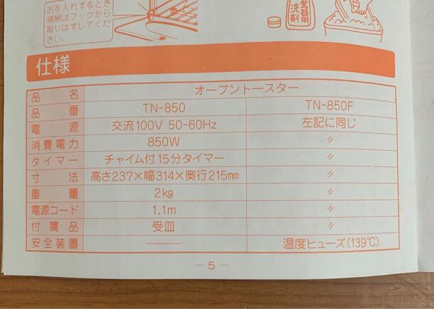 AC100V / 850W のハイパワー仕様で、トーストやホットドッグ、クッキー、グラタンなど幅広い調理に対応します。
