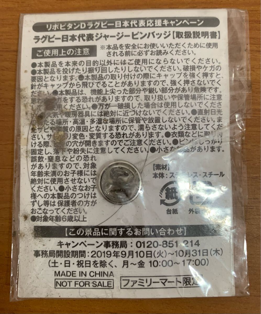 リポビタンD「ラグビー日本代表応援キャンペーン」で配布された、