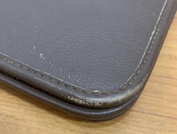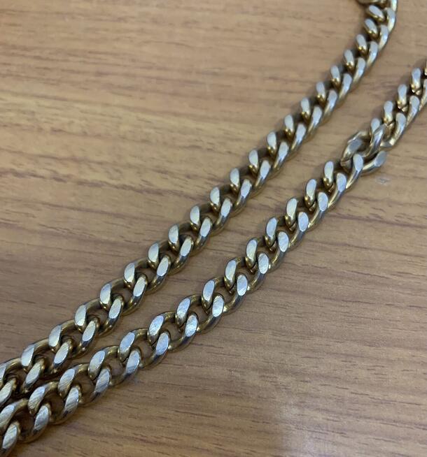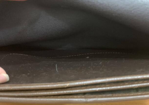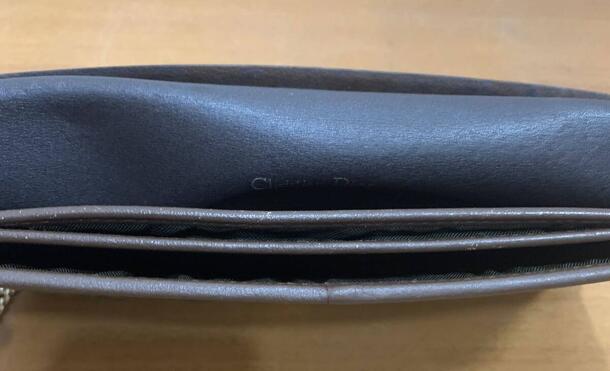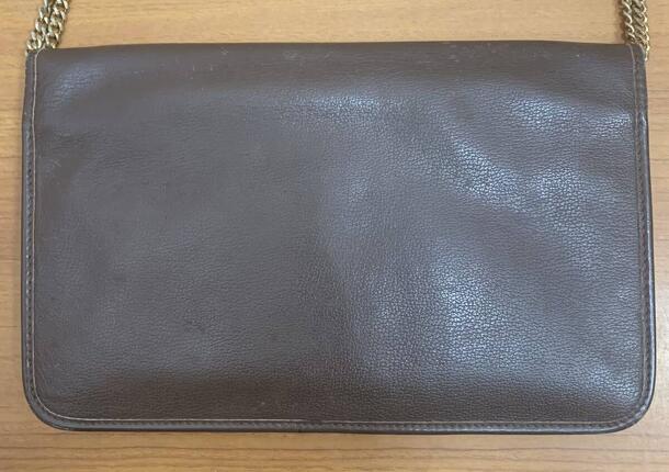 シックなブラウンカラーのレザーに、ゴールドのチェーンストラップが映えるエレガントなデザイン。