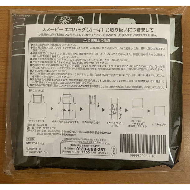 人気キャラクター スヌーピー(PEANUTS) デザインのエコバッグです。