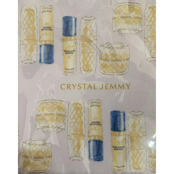 コスメボトルやクリーム容器のイラストが散りばめられており、女性らしくエレガントな印象です。