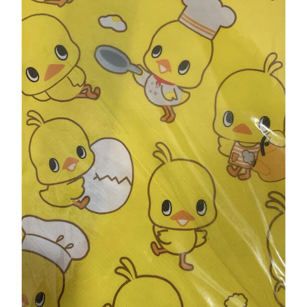 明るいイエローカラーに、さまざまなポーズのひよこちゃんが描かれたポップで楽しいデザインです。