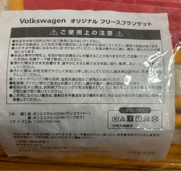 こちらは、Volkswagen(フォルクスワーゲン)のオリジナルデザインによるフリースブランケットです。