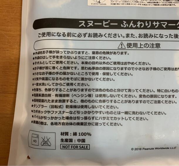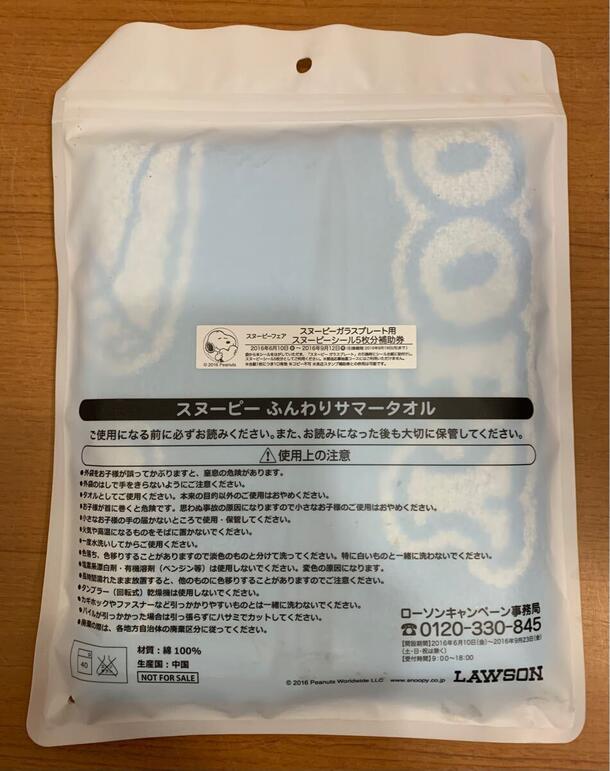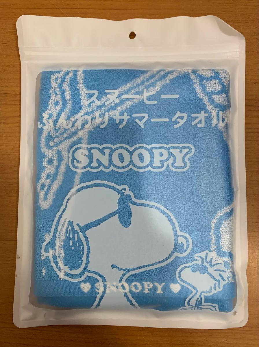 ローソンのキャンペーン限定でもらえる、スヌーピーデザインのふんわりサマータオルです。