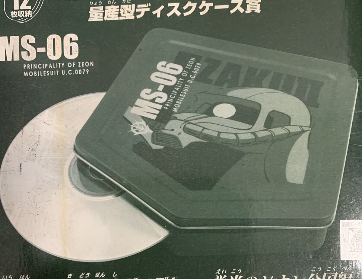 ジオン公国軍の代表的なモビルスーツ「量産型ザク」がデザインされたディスクケース。
