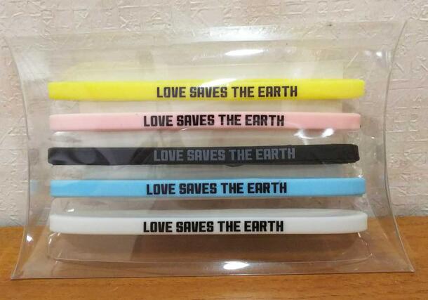 バンドには「LOVE SAVES THE EARTH」のメッセージがプリントされており、チャリティーの趣旨に賛同した方々に人気のアイテムです。