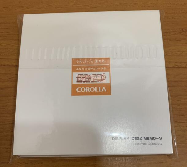 カローラ店限定ノベルティのミニメモ帳(卓上タイプ) です。