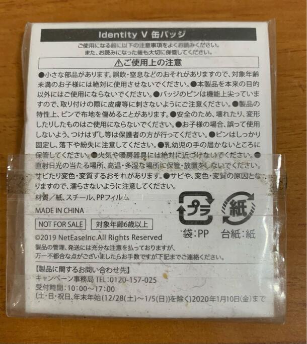 人気スマートフォンゲーム『Identity V(第五人格)』の オリジナル缶バッジ(非売品) です。