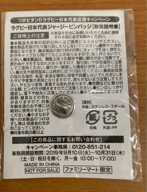 リポビタンD「ラグビー日本代表応援キャンペーン」で配布された、