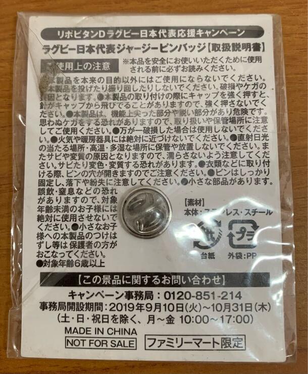 リポビタンD「ラグビー日本代表応援キャンペーン」で配布された、