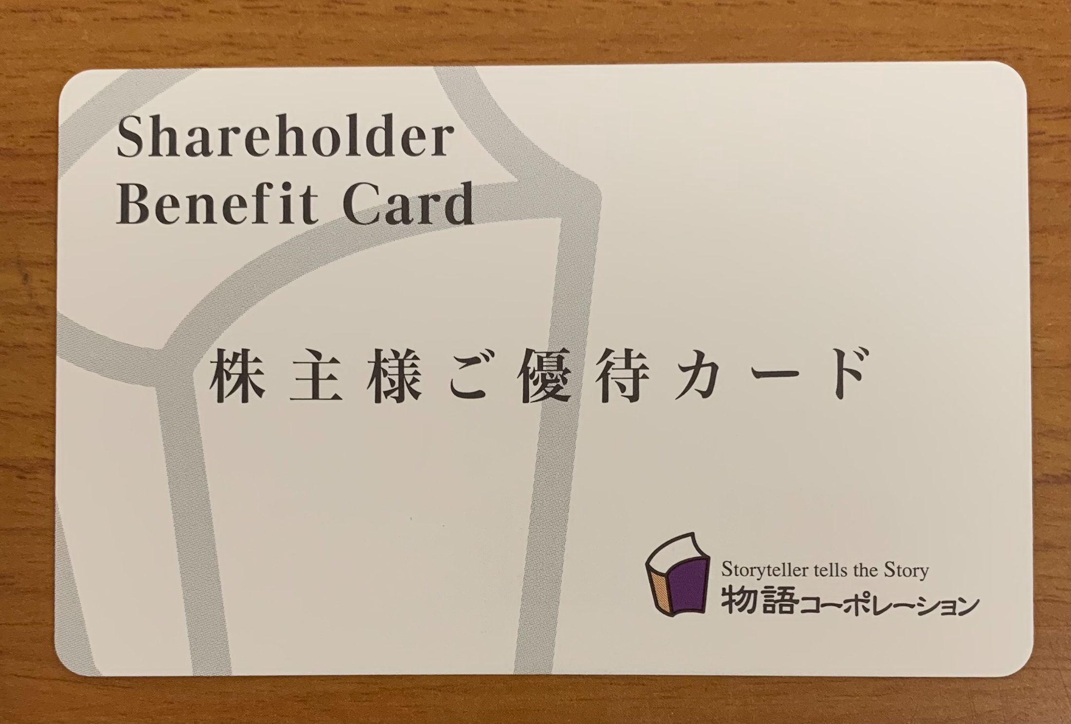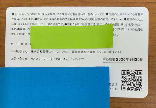 物語コーポレーションの各店舗で利用できる、株主様ご優待カードです。