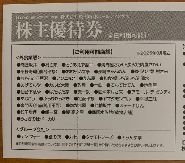 株式会社焼肉坂井ホールディングスが発行する、グループ各店舗で利用可能なお食事優待券セットです。