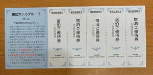 東武鉄道株主優待券 東武ホテルグループ 宿泊ご優待券 2000円分×5枚(合計10,000円分)