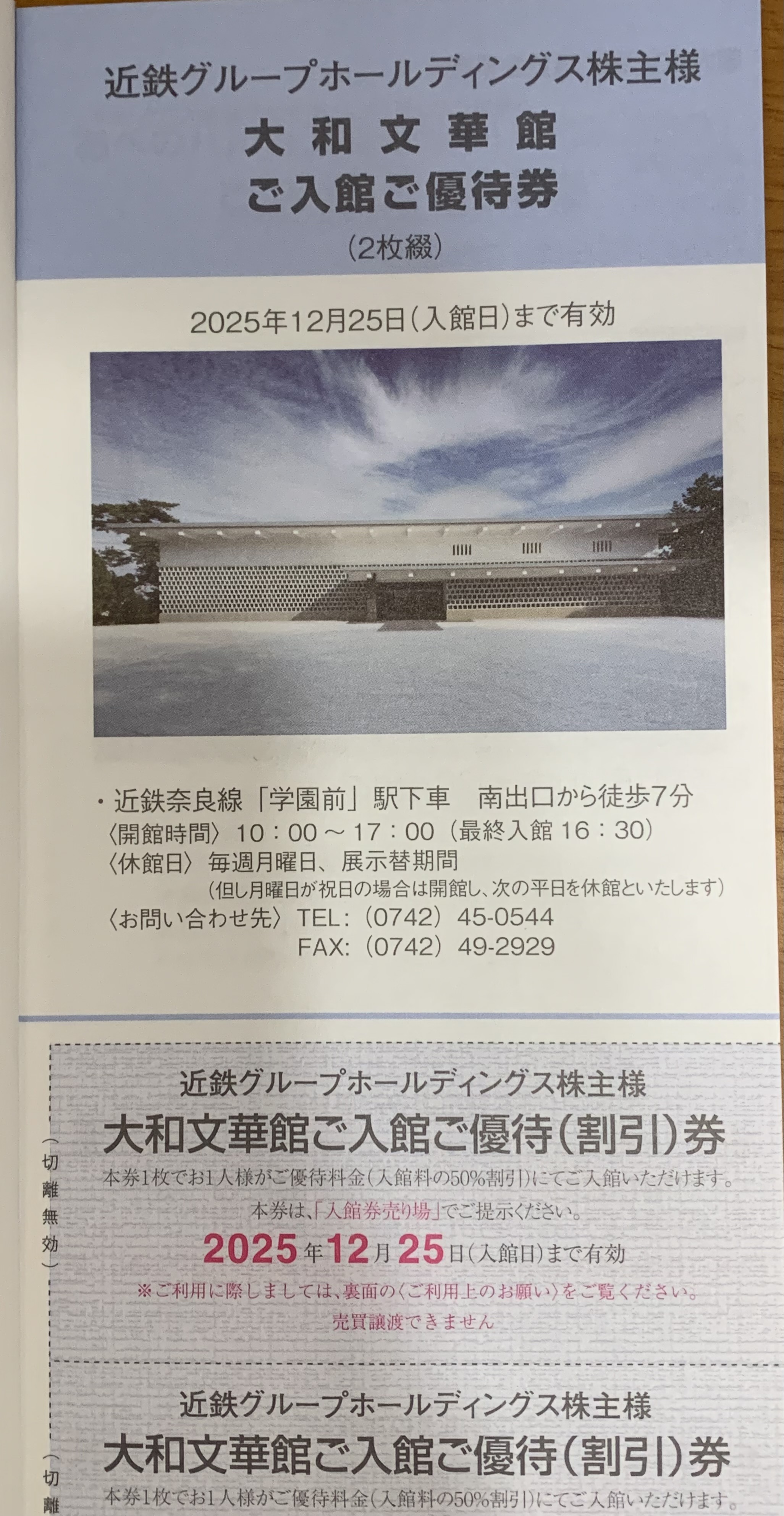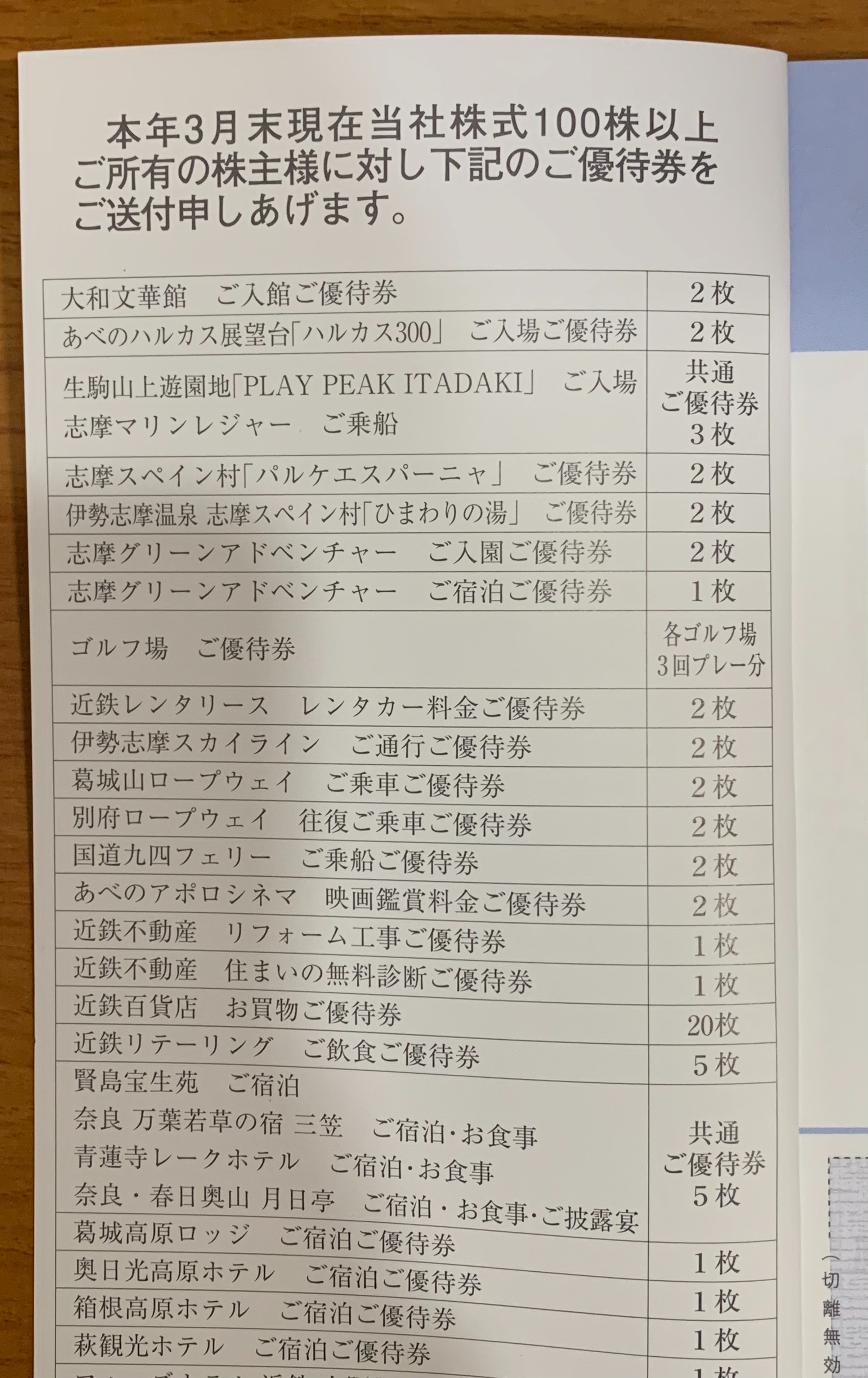 株主様ご優待券 冊子(1冊) です。