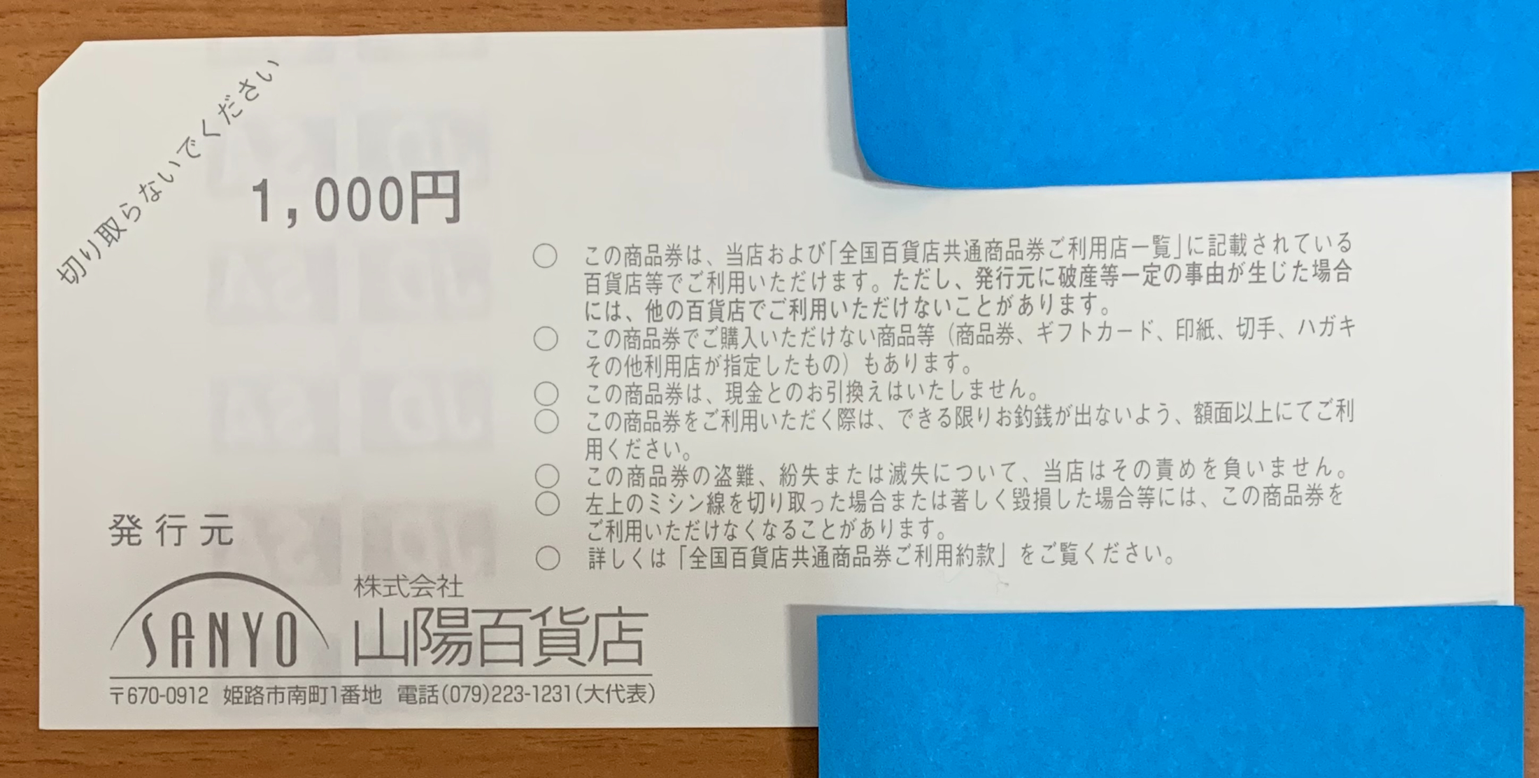 本商品券は 日本百貨店協会 発行の共通商品券で、