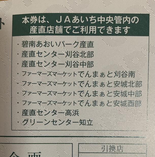 ※JAあいち中央管内の産直店舗で利用可能