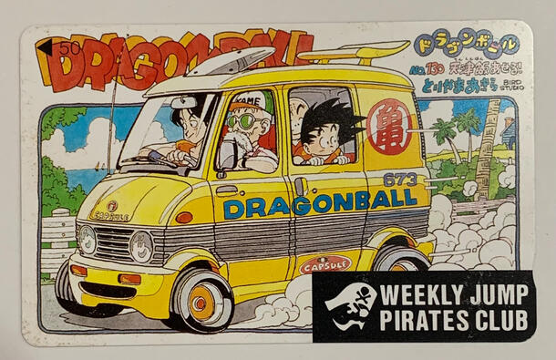 表面には、悟空・亀仙人・クリリン・ブルマ(運転中のキャラクター)など、主要キャラクターが描かれたコミカルなデザイン。