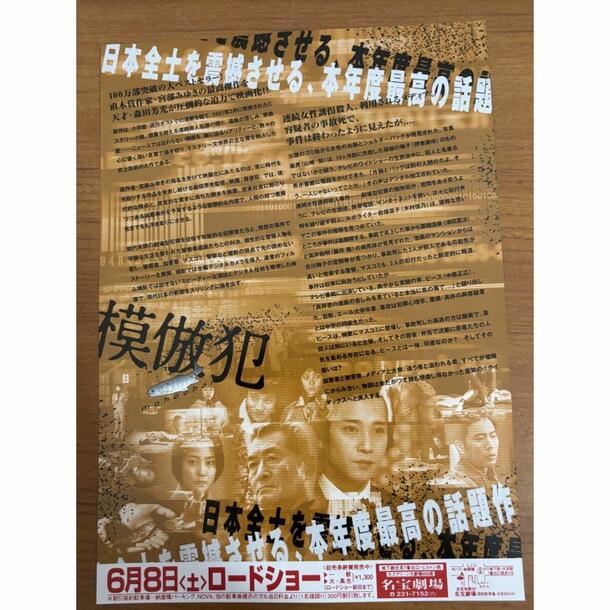 2002年公開、宮部みゆき原作・中居正広主演映画『模倣犯』の劇場配布用フライヤー(チラシ)です。