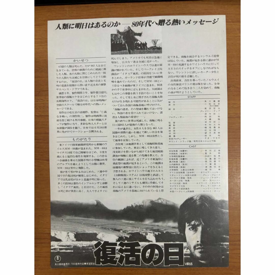 1980年公開、小松左京原作・角川春樹製作の映画『復活の日(Virus)』の劇場配布用フライヤー(チラシ)です。
