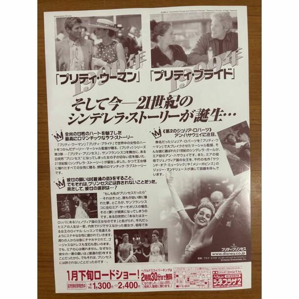 2001年公開、アン・ハサウェイ主演のディズニー映画『プリティ・プリンセス』の劇場配布用フライヤー(チラシ)です。