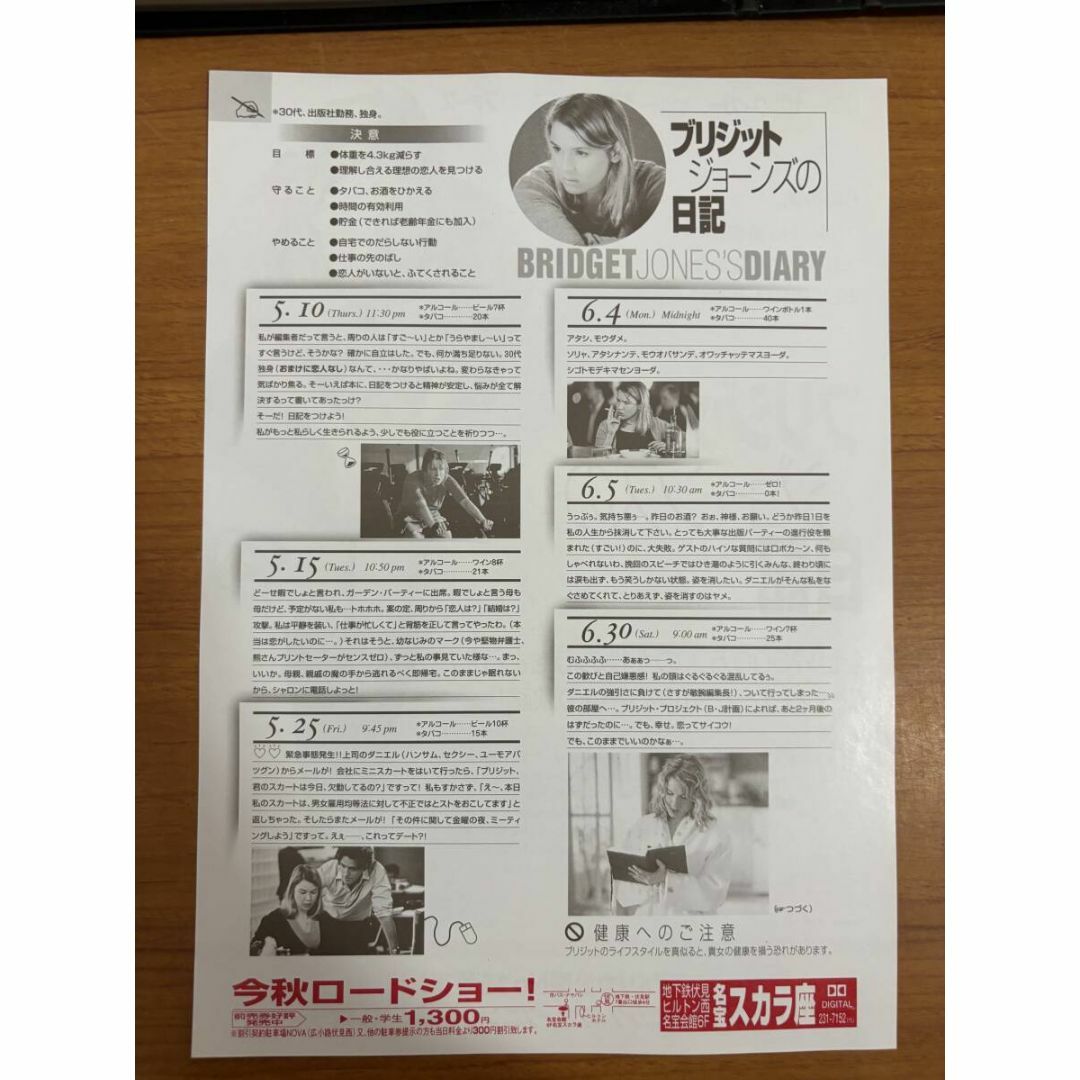 2001年公開、レニー・ゼルウィガー主演の大ヒット恋愛映画『ブリジット・ジョーンズの日記(Bridget Jones’s Diary)』の劇場配布用フライヤー(チラシ)です。