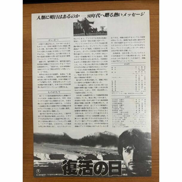 『復活の日(英題:Virus)』の**劇場用B5サイズチラシ(フライヤー)**です。