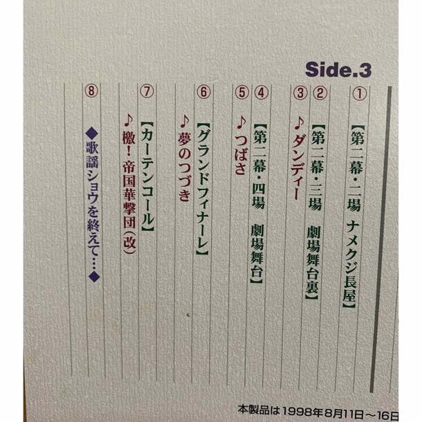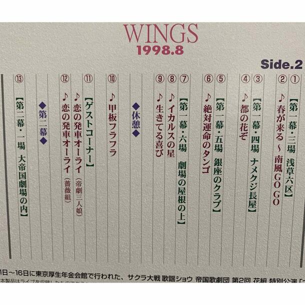 本作は 帝国歌劇団・花組による第2回特別公演「つばさ」(1998.8) を収録した貴重なLDセットです。