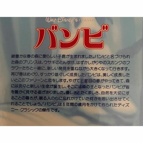 ジャケットにはバンビや仲間たちの可愛いイラストが描かれており、コレクションやインテリアにも最適です。
