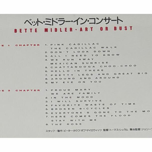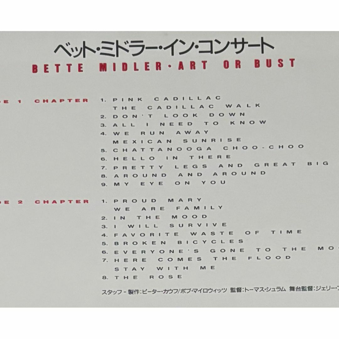 アメリカの人気エンターテイナー、**ベット・ミドラー(Bette Midler)**によるコンサート映像を収録したレーザーディスクです。