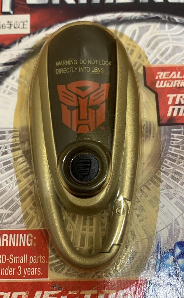 カラビナ仕様になっており、バッグやベルトに装着可能。ボタンを押すと内部のライトが投影され、トランスフォーマーのロゴを映し出す仕組みになっています。